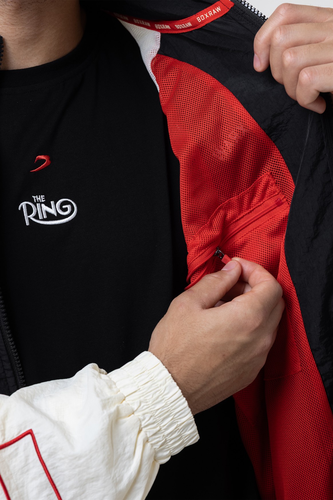 링 x 복스로 재킷은 오버사이즈 핏으로 설계되어 자유로운 움직임과 편안한 착용감을 제공합니다. 내부 메쉬 안감은 효과적인 통기성을 제공하며, 지퍼 포켓은 소지품을 안전하게 보관할 수 있도록 돕습니다. 소매에 배치된 The Ring과 스트라이크 로고는 두 브랜드가 만난 상징적인 협업을 나타냅니다.